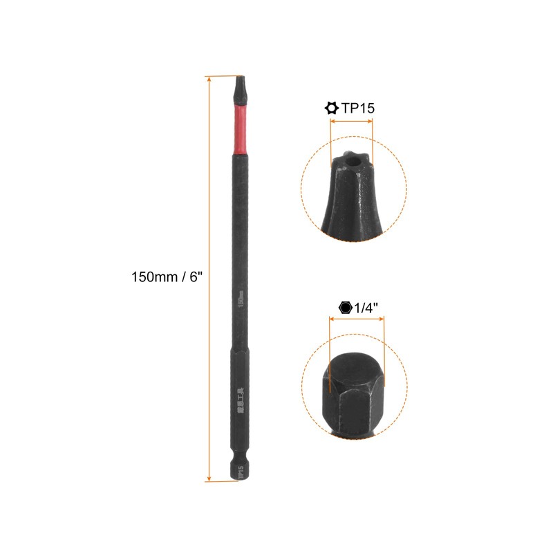 - Size - Type: T15; Total Length: 150mm / 6"; Shank Diameter: 1/4". You will receive 10pcs screwdriver bits in one package.