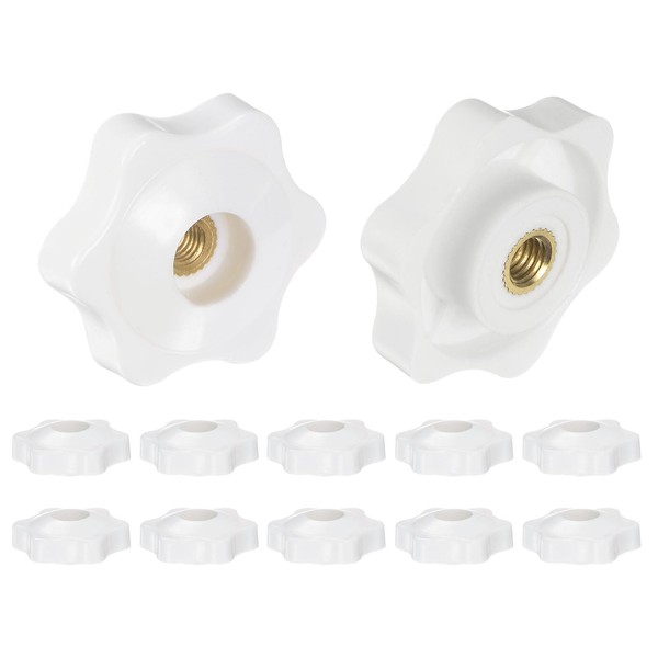 HARFINGTON 12pcs Star Knobs M5 Female Thread 32mm 6-Point Plastic Head Brass Insert Through Hole Screw-in Threaded Hand Knob Clamping Handle, White