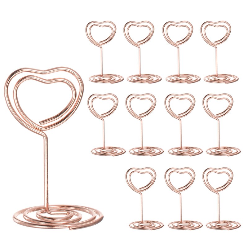 HARFINGTON 12pcs Table Number Holders 1.97 Inch 50mm Tall Mini Heart Shape Steel Photo Holders for Centerpieces Table Place Card Holders for Wedding Reception Party Office Home, Rose Gold
