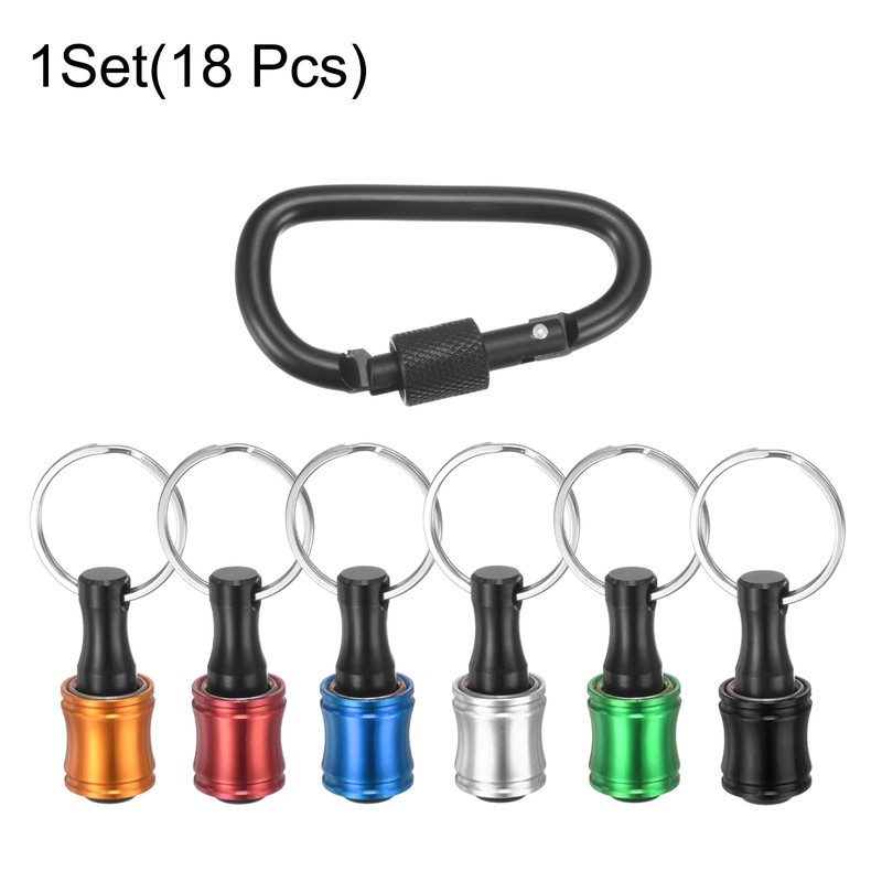 HARFINGTON 18PCS Keychain Aluminum Alloy Screwdriver Bits Holder Extension Bar Release Drill Screw Adapter Quick-Change Portable Lightweight for 1/4 in Hex Shank