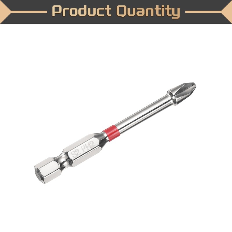 - Size - Phillips head size: PH2 (#2); total length: 65mm / 2.6"; hex shank size: 1/4"; rod diameter: 4mm / 0.16"; hardness: HRC58-60 (The recognized stable hardness is around HRC60.). PH2 screwdriver bits are mainly used for screws of large household appliances.