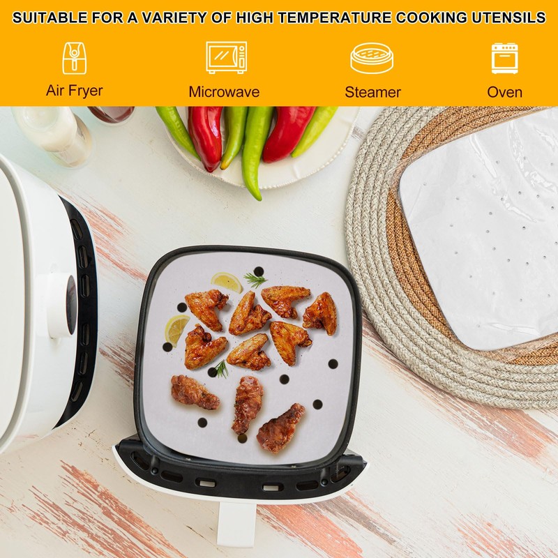 • Feature - The non-stick parchment paper sheets can effectively prevent food from sticking to the paper, which can also prevent food from directly contacting the air fryer or steamer and leaving food residue, making cleaning easier. Perforated parchment liner is designed with sufficient ventilation holes to help speed up the steam circulation in the steamer or air fryer so that the food is heated evenly.