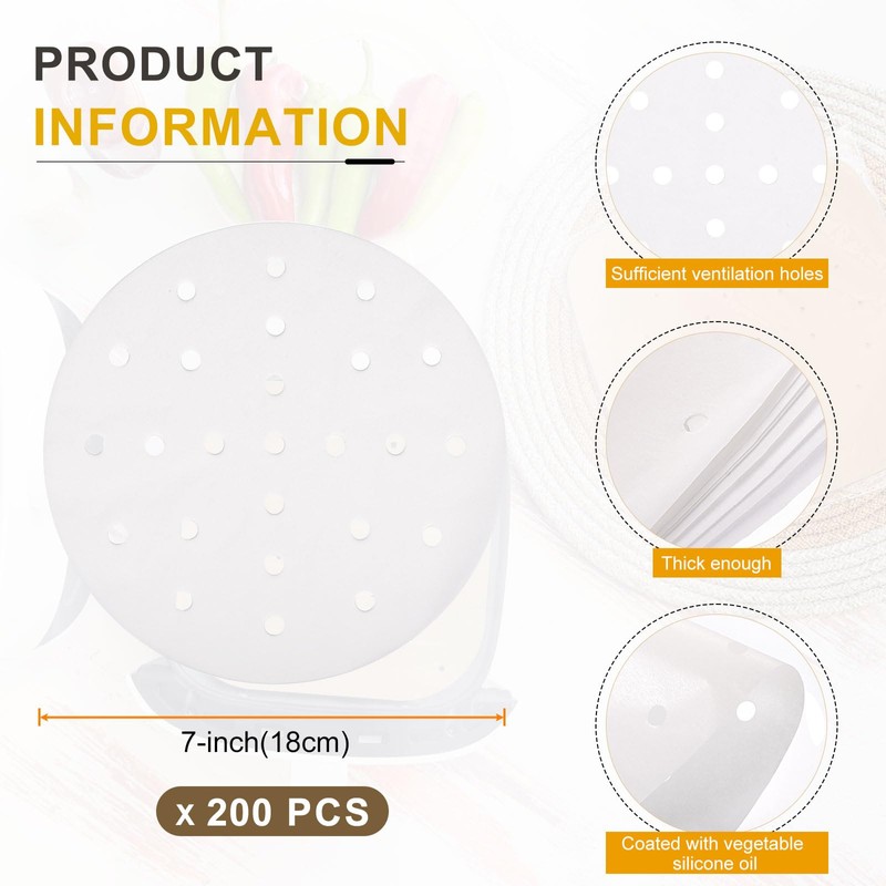 • Size - Each pack contains 200pcs 7-inch(18cm) white round steamer liners. This bamboo steam paper is disposable and replaces the traditional steamer cloth, reducing the inconvenience of cleaning after use.