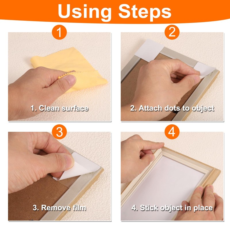 - Features - The clear sticky nano tape dots offers screw-free bonding, ensuring wall integrity and damage-free installation. It can also be easily peeled off without leaving any residue or marks, preserving the integrity of your surfaces and allows for repositioning or future adjustments without hassle.