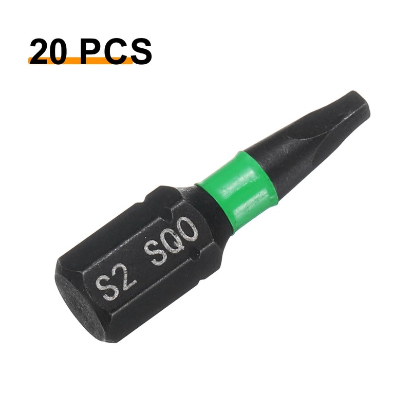 - Size - R1; Total Length: 25mm / 1"; Rod Dia.: 3.5mm / 0.14"; Bit Head Size: 2.5x2.5mm / 0.1"x0.1"(L*W); Square head drill bit specifically designed for driving screws into wood, metal, and other materials effortlessly. Can accurately tighten screws without damaging screws and screwdriver bits.