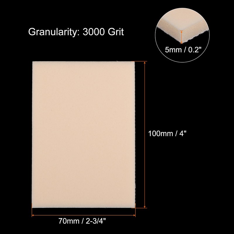 - Size - Granularity: 3000 Grit, Total Size: 100mm x 70mm/4" x 2-3/4"(L*W), Thickness: 5mm/0.2", 24 x Sanding Sponge