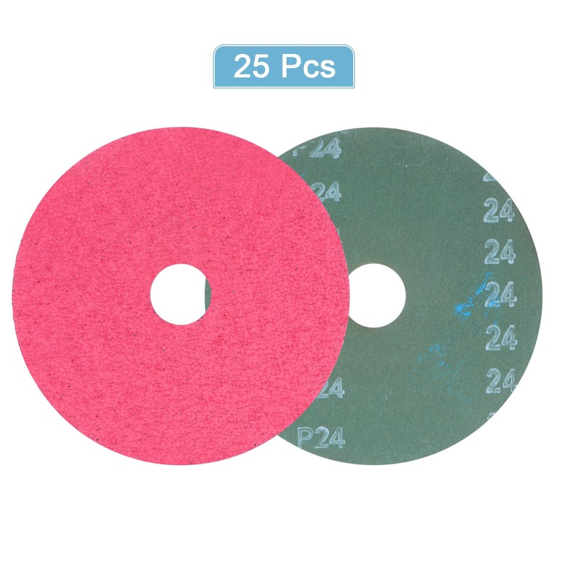 HARFINGTON 25PCS Fiber Grinding and Sanding Discs 5" x 7/8" 24 Grit Ceramic Resin Fiber Abrasive Discs for Grinding Polishing, Red