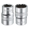 12-point opening is suitable for double hex (12-sided), hex and square fasteners, can grab fasteners quickly at multiple angles, and is used with a 1/2" ratchet handle to prevent the socket from falling off.