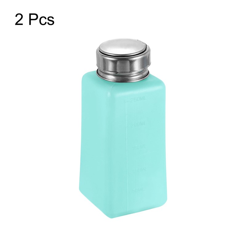 HARFINGTON 2PCS 250ML(8.5oz) Push Down Alcohol Dispenser Pump Liquid Press Empty Bottles Refillable Container for Cleanser Nail Polish Remover, Green