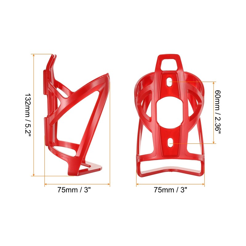 - Size - Bike bottle holder size: 132 x 75 x 75mm / 5.2 x 3 x 3inches (L*W*H); Weight: 101.2g; Suitable bottle diameter: 60mm - 74mm / 2.36" - 2.9"; Hole spacing: 60mm / 2.36".