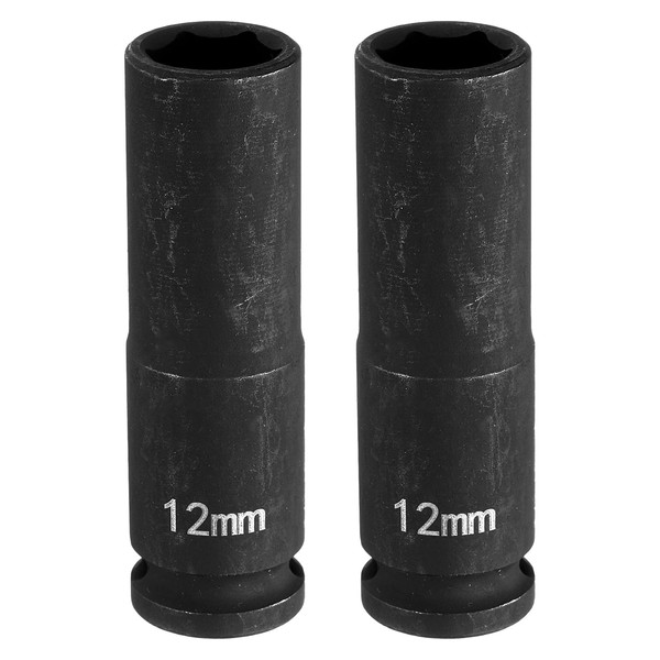 HARFINGTON 2pcs Deep Impact Socket 3/8" Square Drive by 12mm Metric 6 Point Socket 65mm (2.56") Long CR-MO Steel Industrial Grade Flip Socket for Home Auto Hex Nuts Bolts Repair, Black