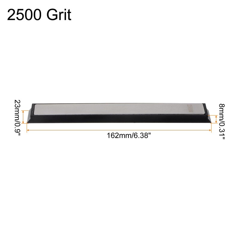 - Size - It is 2pcs Diamond Sharpening Stone with 2500 grits, length: 162mm/6.38-inch, width: 23mm/0.9-inch, height: 8mm/0.31-inch.