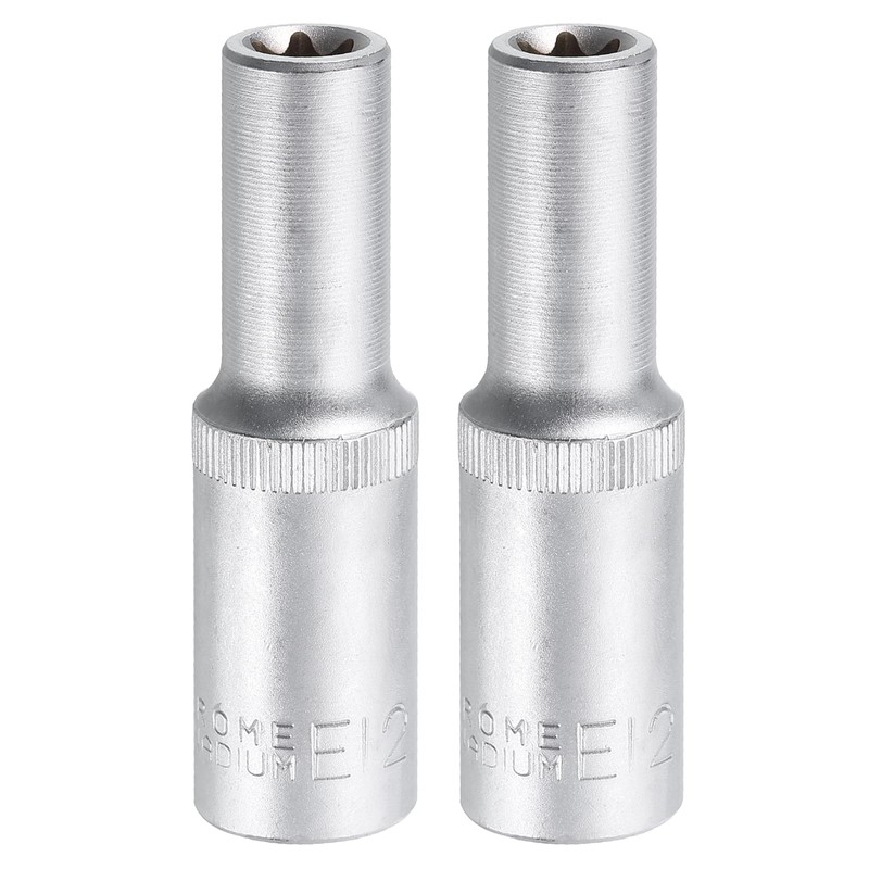 - Size - Drive: 1/2"; Socket Specifications: E12; Total Length: 78mm / 3.07"; Package includes: 2 x External Torx Socket. The specifications of the socket are visible and engraved on the surface. You can quickly switch between different socket sizes to improve work efficiency.