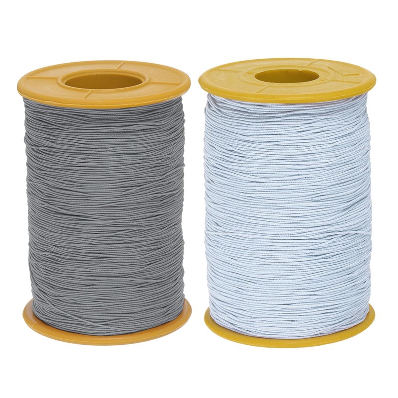 - Size - Length of each roll: 500m / 547 Yard; Thickness(Dia.): 0.5mm; Color: Dark Gray & White; Package included: 2 x Elastic sewing Thread.
