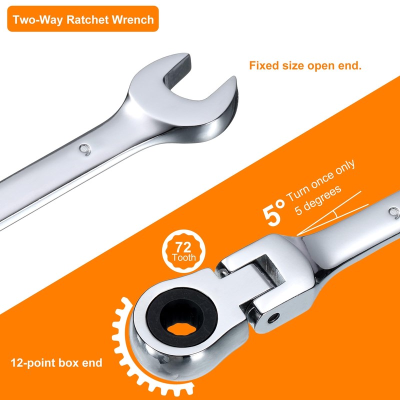 - Feature - 180° flex head of metric ratchet combination wrench can reach the most difficult-to-reach fasteners, and can achieve maximum flexibility and ease of use in a small space. Its anti-slip tooth design provides a firm grip, fits tightly to the fasteners, prevents sliding.