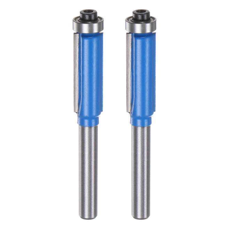 HARFINGTON 2pcs Flush Trim Router Bit 6mm Shank 3/8" Dia 1" Cutting Depth Top Bearing Flush Straight Cut Trimming Router Bits Carbide for Particle Board Plywood MDF Woodwork, Blue