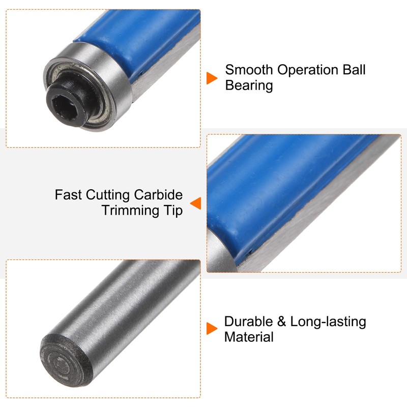 - Material - The flush trim router bit is made of good quality carbide material which allows for quick hole opening and clean cutting, ensuring durability and long-lasting performance, and features a coating that reduces friction and prevents heat buildup during use.