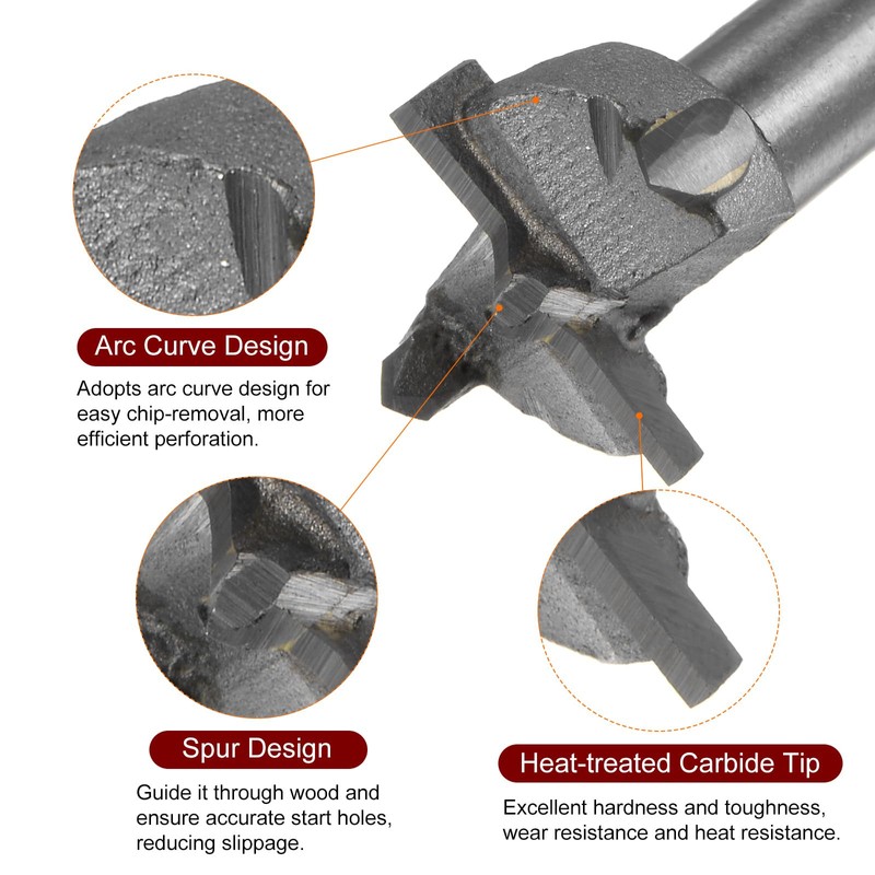 - Features - The spur help guide it through wood and ensure accurate start holes, reducing slippage. Arc curve design head for easy chip-removal, more efficient perforation. The forstner bit can drill precise, smooth, and neat holes without burrs.