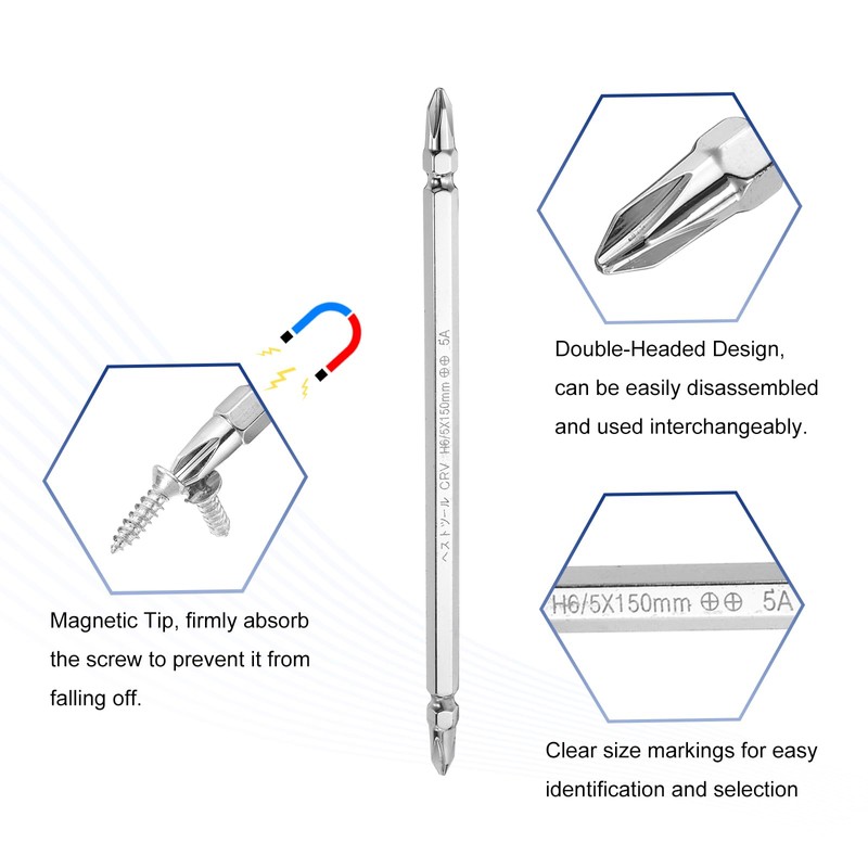 - Feature - The two sided screwdriver bits are designed with strong magnetism, which can stably absorb the screws vertically or tilted and easily fix the screws, especially in a small space, which can make it more convenient to complete the work