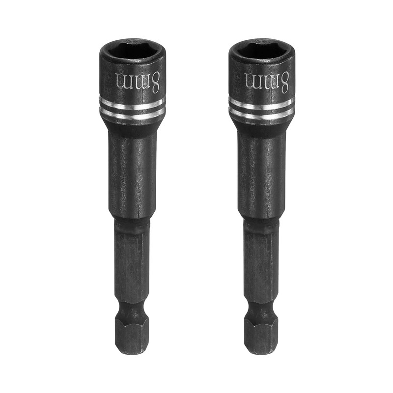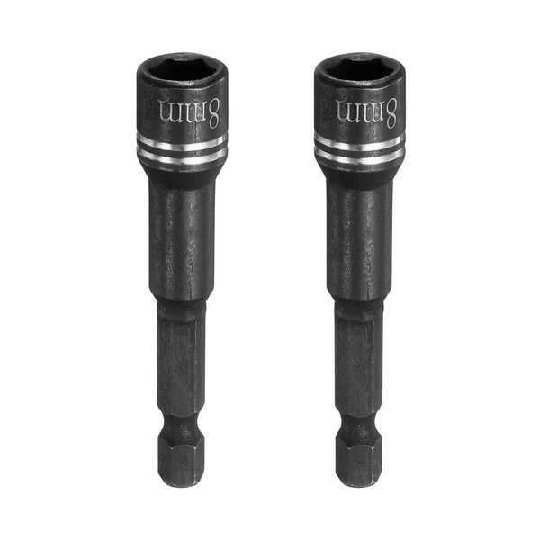 HARFINGTON 2pcs Magnetic Nut Driver 8mm Hex Drive Socket 2.56" Length Power Screw Drill Bits Socket Wrench Tools with 1/4" Quick Change Hex Shank for Power Drills Impact Drivers, Black