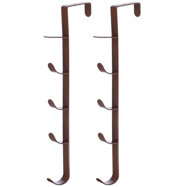HARFINGTON 2pcs Over The Door Hook Metal Over The Door Vertical Hooks Coat Hanger for Hanging Coat Bags and Towels Over The Door Hat Racks with 5 Hooks for Bathroom Behind Back of Door, Brown