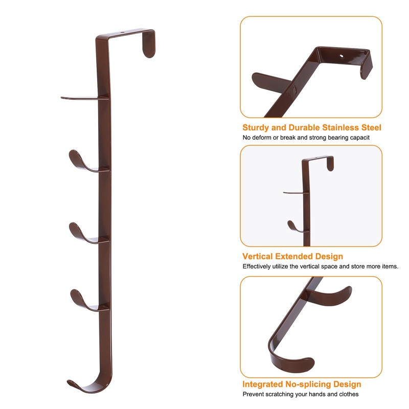 - Feature - The back of the door hook organizer adopts an integrated no-splicing design, and the smooth edges prevent scratching your hands and clothes. The extended design can help you effectively utilize the vertical space and easily organize and store more items.