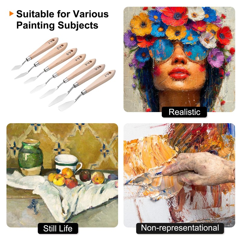 - Application - Suitable for oil painting, acrylic painting, and various other artistic applications. Suitable for mixing, smearing, scraping, and creating broad strokes, it is a versatile tool for both amateur and professional artists.