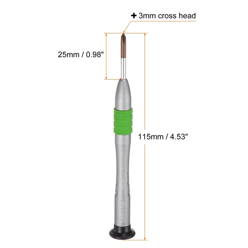 • Size - 3mm cross head, 25mm / 0.98" bit length, 115mm / 4.53" total length. Aluminum alloy steel handle, comfortable hand feeling, with special anti-slip design and 360° rotation cap.