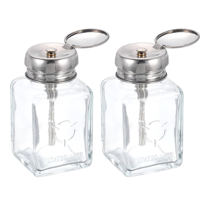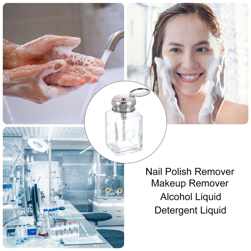 - Applications - Glass push-down dispensers are good for alcohol, acetone, skin care products water emulsion essence, cleanser, nail polish remover, makeup remover and more.
