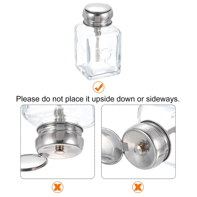 The push-down dispensers are good for alcohol, acetone, skin care products water emulsion essence, cleanser, nail polish remover, makeup remover and more. Do not place it upside down, just stand upright to prevent solvent leakage, evaporation and corrosion.