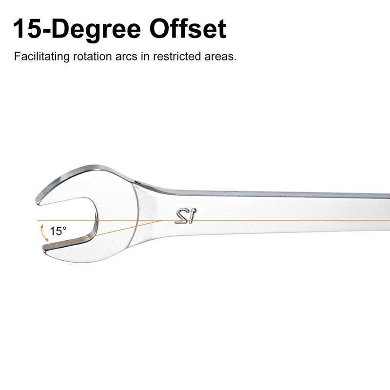 - Features - Designed for accessing tight spaces, our super-thin wrenches surpass conventional tools, reaching fasteners where others fail. With a 15-degree offset on each end, they facilitate rotation arcs in restricted areas. Clearly stamped size indicators ensure swift selection and effortless identification.