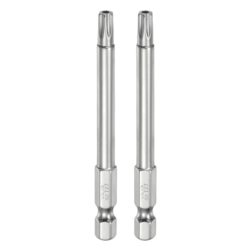 - Size - Tamper-proof torx bit size: T27, hex shank size: 1/4", total length: 75mm / 3", rod dia.: 5.5mm / 0.22", hardness: HRC58-60, style: torx head with hole. Each hex screwdriver bit is clearly engraved with size number for easy identification.