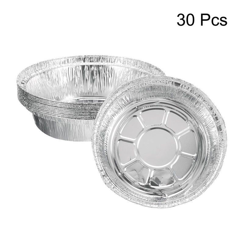 HARFINGTON 30pcs Aluminum Foil Pie Pans 6.3" Round Disposable Non-Stick Baking Pans for Pies Quiches Tarts Baking Cooking Reheating Parties, Silver
