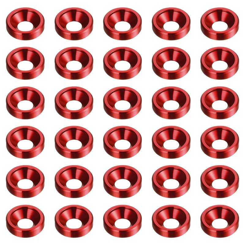 HARFINGTON 30pcs Countersunk Washer M3 Anodized Aluminum Alloy Finishing Washers, Screw Gaskets for Mechanical Accessories Parts, Red