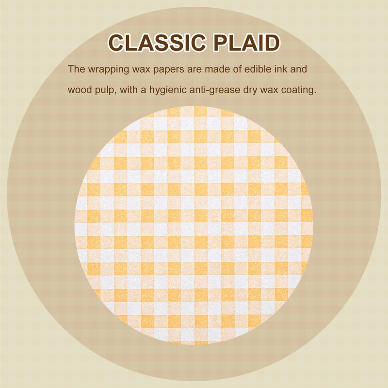 HARFINGTON 30pcs Square Checkered Wax Paper Sheets 8.66" x 8.66" Oil-absorbing Dry Food Wrapping Paper for Sandwich Baking Paper Liners Picnic Basket Bread Hamburger Wrap Kitchen, Yellow