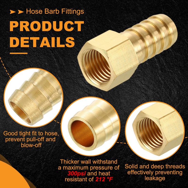 - Effortless Installation: 1/2" Barb To 1/4" NPT Female Brass Barb fitting Quick and secure connections for hoses, pipes, and pump connectors, good for DIY projects or professional setups like HVAC systems and water supply systems.