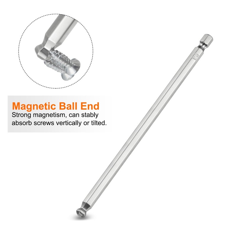 - Feature - The ball end hex bits are designed with magnetism, which can stably absorb the screws vertically or tilted and easily fix the screws, especially in a small space, which can make it more convenient to complete the work.