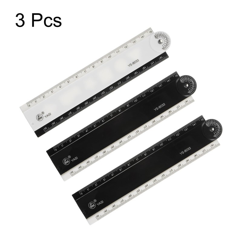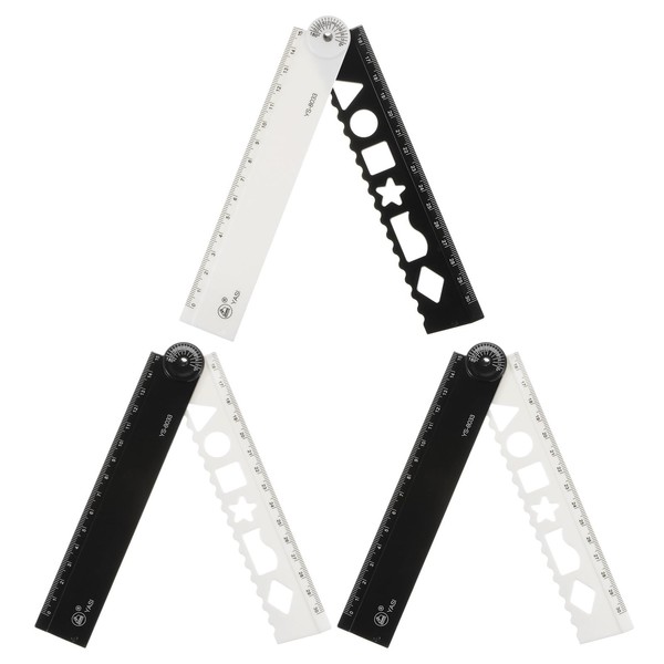 HARFINGTON 3pcs Folding Ruler 30cm Metric Polystyrene Foldable Angle Protractor Measure Measurement Measuring Tools Construction Ruler Straight Ruler for Artists Designers, Black White
