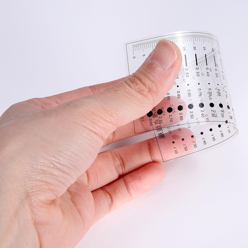 - Material - The SEC size estimation chart is made of PET clear plastic, which is resistant and unbreakable. This film transparent ruler is very thin, as thin as paper, and much thinner than ordinary rulers.