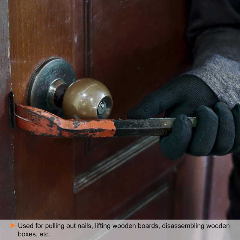 • Applications - This prying tool can be used in homes, construction sites, factories, outdoors, etc. The alloy utility bar is suitable for prying, disassembling and aligning boards, machinery, etc., which can also be used for pulling out nails, lifting wooden boards, disassembling wooden boxes, prying open plywood, etc.