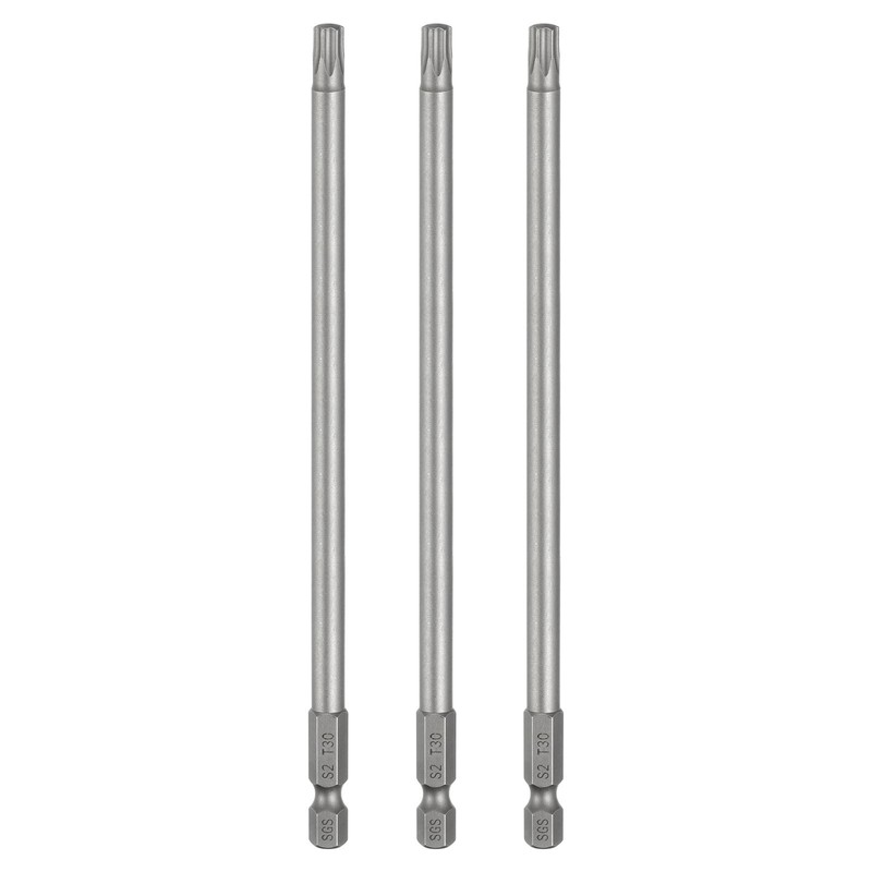 - Size - Torx head size: T30; hex shank size: 1/4"; overall length: 150mm / 6"; rod diameter: 6mm / 0.24"; special design: torx head without hole; hardness: HRC59-61 (The recognized stable hardness is around HRC60.).