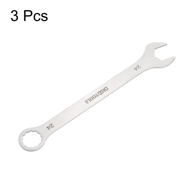 HARFINGTON 3pcs Thin Combination Wrench Metric 24mm Torx Ended Box 15 Degree Offset Open End Stainless Steel, Silver Tone