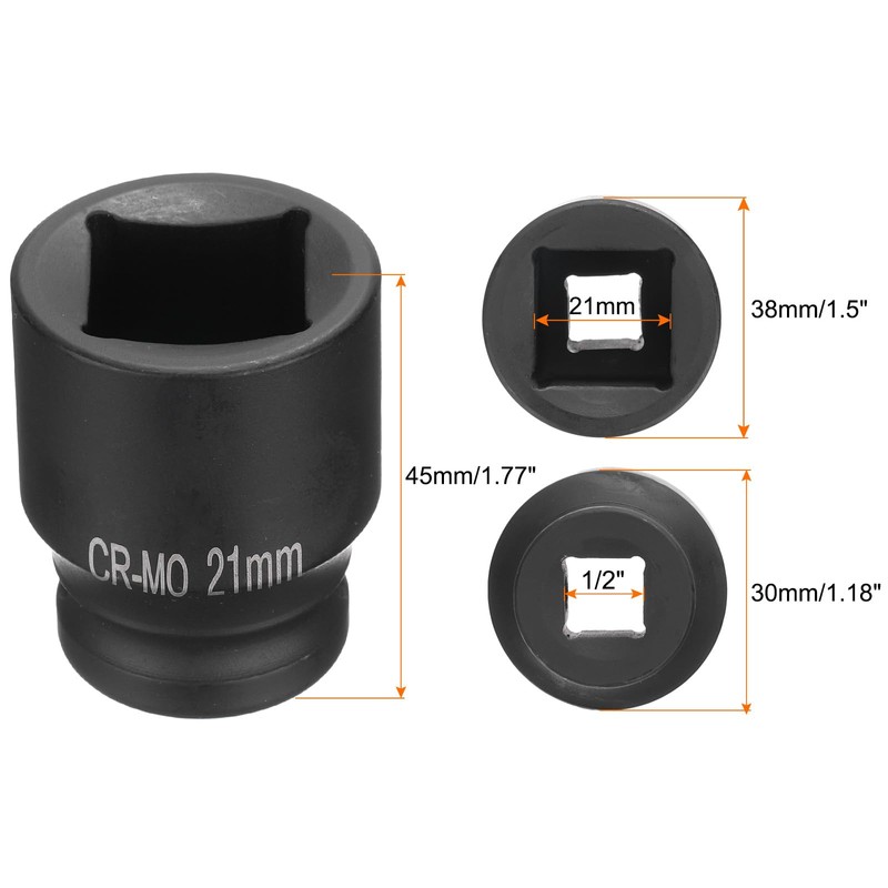 - Size - 1/2" Drive; 21mm Square Impact Socket; Total Length: 45mm / 1.77"; Package Includes: 1 x 4 Point Square Socket.