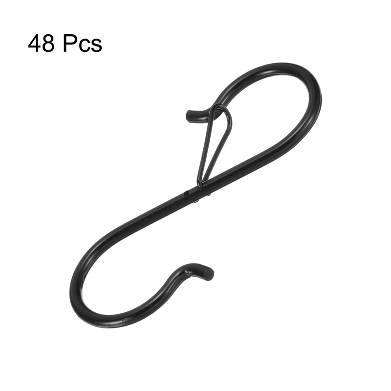 HARFINGTON 48pcs S Hooks 3.5 Inch S-Shaped Metal Hook Hanger with Safety Buckle for Hanging Plants Clothes Pots and Pans Kitchen Utensil Bags, Black