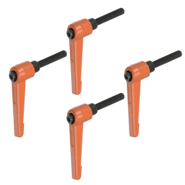HARFINGTON 4pcs Adjustable Clamping Lever Handles M6 x 30mm Male Thread Bolt Knobs Rotating Screw Locking Quick Release Ratchet Push Button Handle, Orange