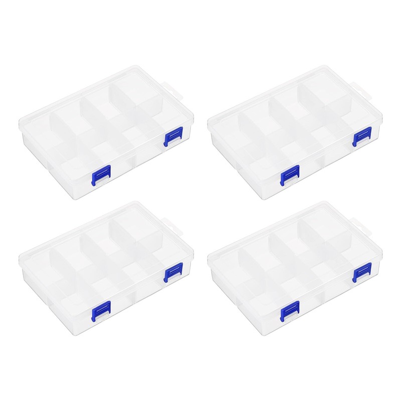 HARFINGTON 4pcs Component Storage Box 8 Grids PP Electronic Organizer Box with Adjustable Driver Large Hardware Containers Tools Boxes for Small Accessories