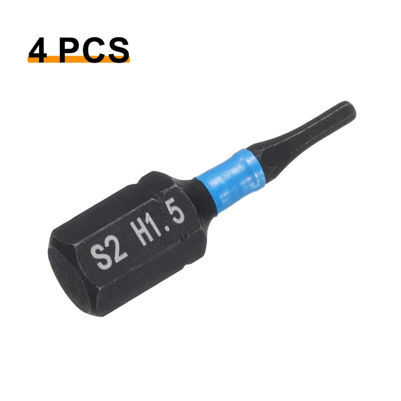 - Size - H1.5; Total Length: 25mm / 1"; Shank: 6.35mm/ 1/4 inch hex shank; Hexagon head drill bit specifically designed for driving screws into wood, metal, and other materials effortlessly. Can accurately tighten screws without damaging screws and screwdriver bits