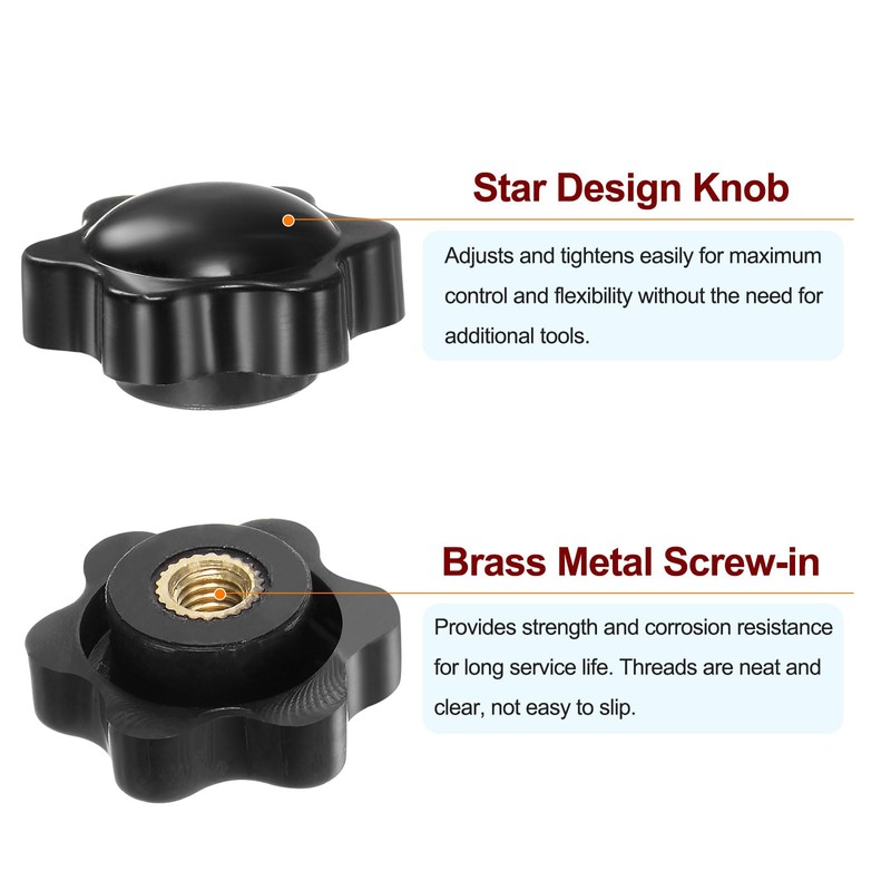 - Material - Sturdy and durable plastic star knobs ensure durability and long-lasting performance. Brass metal screw-in female thread provides strength and corrosion resistance. Threaded knobs provides a smooth surface, comfortable grip and ergonomic operation