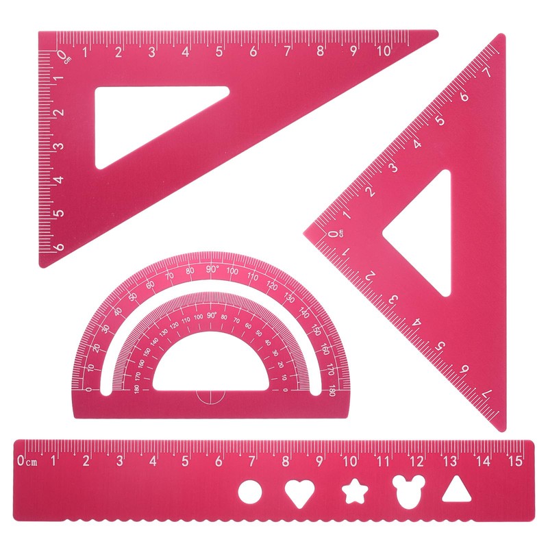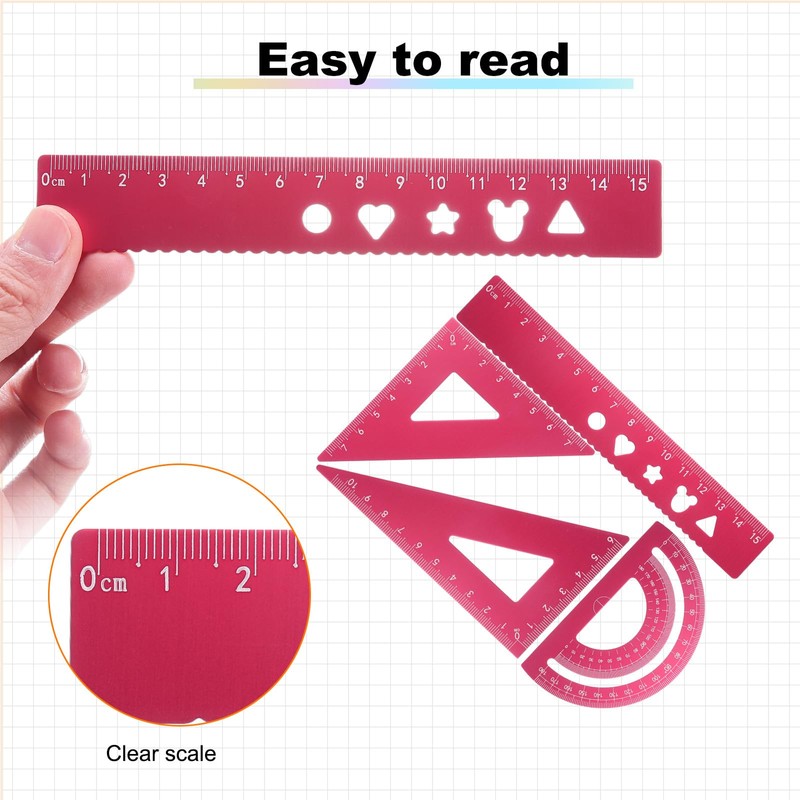- Package Content - 1pcs straight rulers, 1pcs 30/60 degree triangle rulers, 1pcs 45/90 degree triangle rulers, 1pcs protractors. Different types of rulers can meet different drawing needs and improve measurement and drawing efficiency.