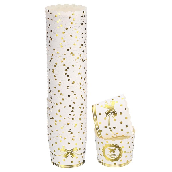 HARFINGTON 50Pcs Paper Baking Cups 6oz Cupcake Wrappers Scalloped Muffins Cases Liners Disposable Greaseproof Containers for Birthday Party, Bow Gold Dots
